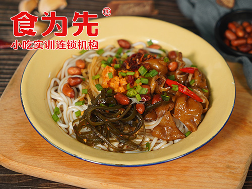 食为先老家拌粉是一道风味小吃,经米粉等佐料调拌而成。开店市场空间大,0基础也能学会,无需大厨即可快速出餐,主要制作有选料、泡粉、卤汤制作、食材腌制处理方法、肉酱的制作、配菜:(萝卜干、海带丝、花生米)酱料:辣椒酱、瓦罐汤:香菇肉饼汤、鸡蛋肉饼汤、桂圆肉饼汤、墨鱼肉饼汤、炒米粉、卤牛肉、卤牛肚、卤猪耳朵、卤肥肠、卤藕、卤蛋等。与其他地方所产的不同,对粉的韧性要求高,未煮的生粉根根结实、透明,煮后的熟粉条条细嫩、洁白,具有久泡不烂、久炒不碎、韧而不硬的特点。