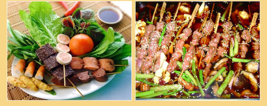蔬菜类:串蘑菇 串菠菜 串千张 串白菜 串生菜 金针菇 串干子 串藕片 串茄片 串青椒 玉米棒等