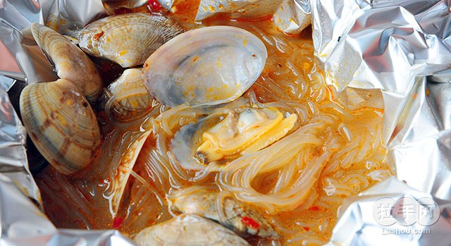 开心花甲,又名花甲粉、锡纸花甲,是在湖南省长沙的夜宵摊流行的风味小吃,源自夜宵街,现在已经风靡全城。具有香、辣、嫩等特点,柔嫩可口,香味逼人,口感丰满而醇厚、新鲜
