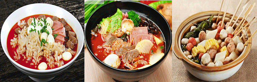 水产品:串鱼片 ★串鱼肠 ★串鱼泡 ★串蟹棒 ★串墨鱼丸 ★串鱼丸 ★串海带 ★串鱿鱼 ★串墨鱼 ★串青虾 ★鹌鹑蛋 ★串豆腐等