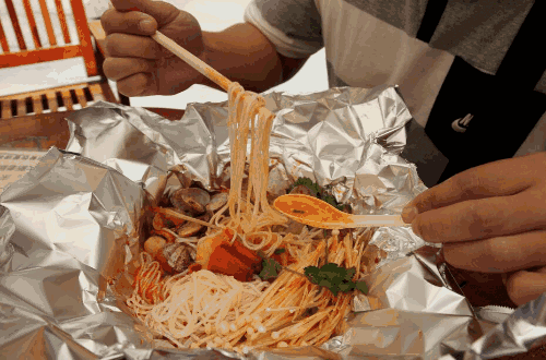 开心花甲又名花甲粉、锡纸花甲。近年在湖南省长沙的夜宵摊流行的风味小吃,源自夜宵街,现在已经风靡全城。具有香、辣、嫩等特点,柔嫩可口,香味逼人,口感丰满而醇厚、新鲜而细腻、绝佳的柔顺口感、余味清爽。开心花甲的制作,就是采用优质铝合金,经优化工艺精工轧制后,高温退火软化及消毒杀菌而成的锡纸包着嫩嫩的花甲和美味的酱汁在火上烤。烤熟后把米粉趁热下到碗里,香气扑鼻, 只叫人垂涎三尺。