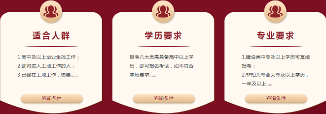 八大员资格证书受到追捧,与国家对建筑施工领域的要求越来越严格分不开,目前八大员必须持证上岗,在建筑行业总量增多、对施工质量......