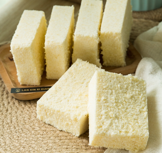 7. 完全冷却后脱模,切块;成品底部不粘盘,表面不粘手。