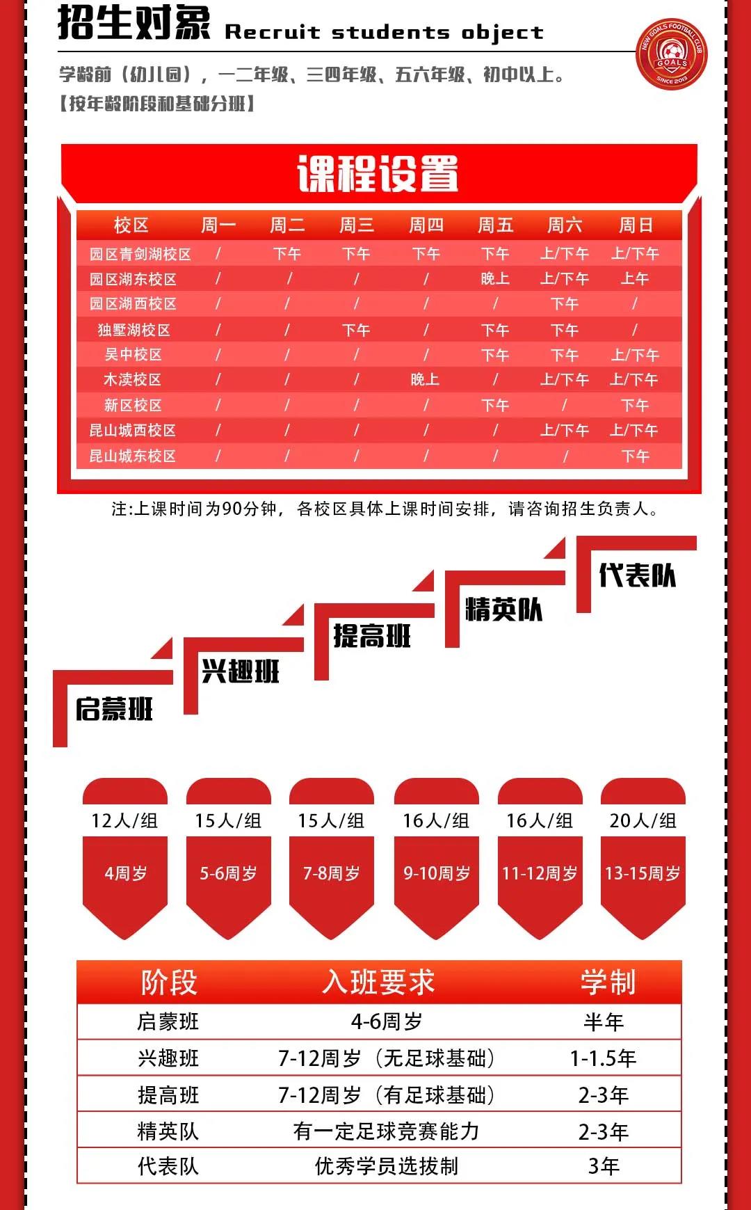 2. 俱乐部梯队、精英赛体系建设,U系列联赛,让学员不断成长和晋升,竞技与快乐,伴随孩子一生。目前俱乐部已设U7、U9、U11、U13梯队体系建设......
