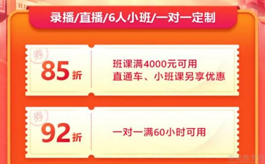 11月12日-11月17日,苏州新东方英语的托福班课满4000元享【85折】优惠,一对一课程满60小时享【92折】优惠,班型包括录播/直播/6-8人小班/1V1定制课。无论你是学业忙,时间少,还是备考效率低,做题错误率高我们都有课程适合你!从知心录播、畅学直播到6人小班、1对1定制等课程,配套口语、写作批改,更有答疑、伴学多种服务。