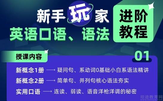 新手如何进阶英语口语、语法教程授课内容:新概念1册——疑问句、系动词0基础小白系语法精讲;新概念2册——简单句、并列句核心语法夯实;实用口语——连读、弱读、语音洋枪洋调的秘密。