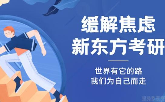 考研是一件很辛苦的事情,各位同学们,如果你学的累了,就去跑跑步,听听歌,与外面的世界打打招呼,呼吸呼吸新鲜的空气,感受一下别人的生活,然后及时收起自己的焦虑,然后大刀阔斧地向前走去,不管你的心情如何,学习如何,新东方考研都会全程与大家相伴。加油吧,考研人,相信自己,去他的焦虑。