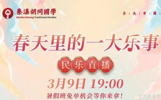 辛丑年开播啦~3月8日-10日每晚7:00,秦汉胡同直播间等你来,书画、民乐、正脊、篆刻11位秦汉胡同名师,在线对话,送豪礼,抽送暑假班免费名额哦,专业提升技巧、常见问题分析、工具避雷指南,知之深,爱之切。文墨丹青赋才情,寻一内心所依,或考级或陶冶,老师的干货分享对你都有所裨益。秦汉胡同的直播间,料不止在低价。