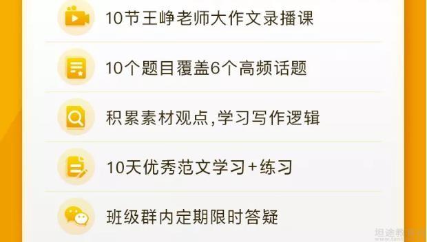 课程包含12节录播精讲课,王老师将带给你涵盖6大高频话题及4种雅思大作文必考题型,附加备考建议及评分标准讲解。课后会有大作文分话题练习,每周王铮老师在微信群内答疑及进行作业抽评,集中解答雅思写作困惑。