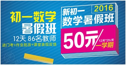 青岛新东方学校给广大中小学生们,开设的新初一暑期辅导班,为期12天的高端辅导,让学员在暑期赶超同学,现在报名仅仅需要50元,想要学习新初一数学的学员们,快来报名吧!