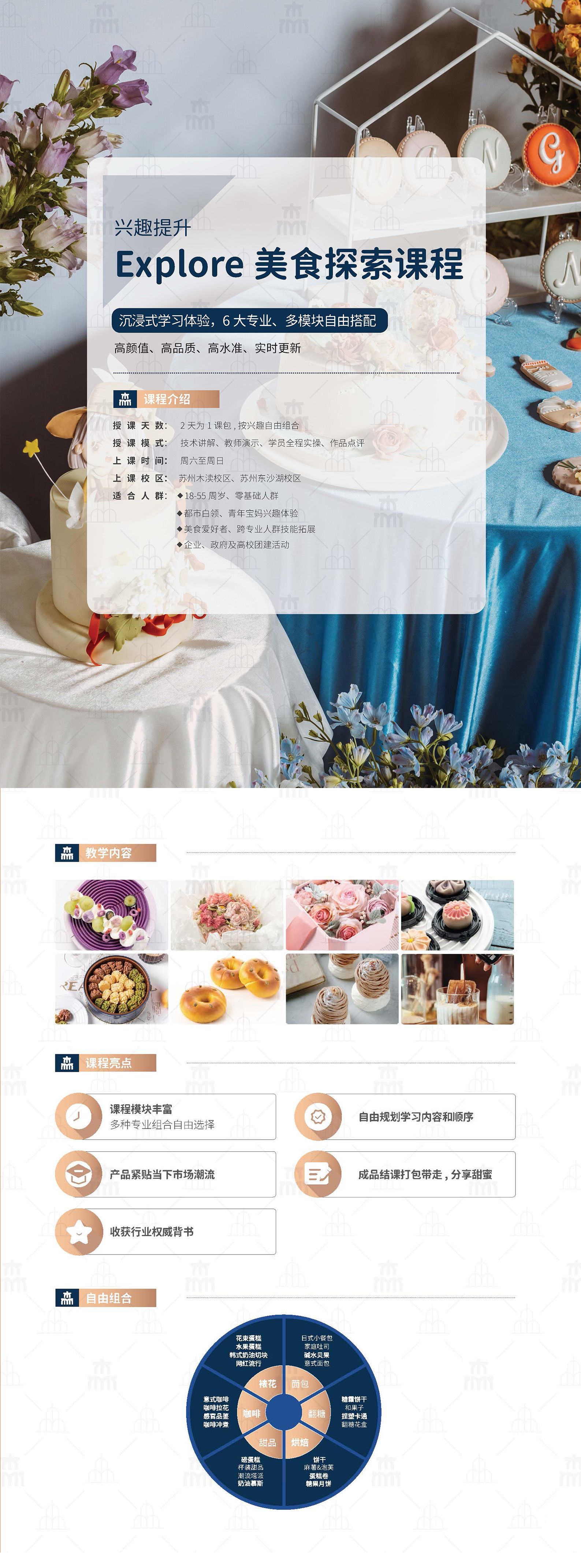开设有短期研修课程以满足创就业群体的需求,同时开设酒店管理专业、英才管理专业,以及与瑞士知名学校 SEG 瑞士教育集团联合,开设的美食艺术与餐饮管理专业,以满足青少年更深层次的学习需求,苏州东沙湖校区有实力成为中国乃至全亚洲西点技能人才培训的优秀品牌。