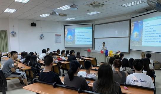 在这个环节,覃老师用多部电影带领同学们进入英语世界,探索它们起名的规律,并展开了解多种有关电影的单词的读法,将介绍电影的流程拆分了三个结构,并教知学生在介绍电影/书情节时,用一般现在时即可。讲座上,老师通过严谨又不失风趣的讲课方式为大家了解影视英语打开了新的窗口,拓宽了新的学习英语的视野。在一个小时的讲座过程中,同学们兴趣颇高,场内气氛热烈。