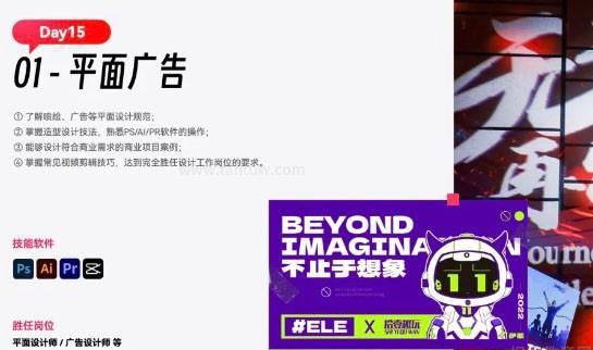 后面还会学习电商设计与营销表现,这个阶段会通过网格布局、视觉标准、构图法则、色彩应用等专业知识了解绝佳的设计流程、创意方案、标准化的设计规范,达到独立完成电商项目的目的。