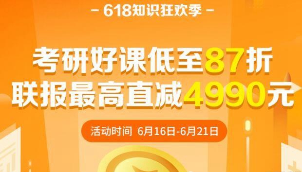 6月已经过半,上海新东方考研21考研的你不能再拖了——6·18知识狂欢季来了!公共课、专业课、各类考研好课低至87折,联报最高直减4990元!300张87折优惠券派送中!