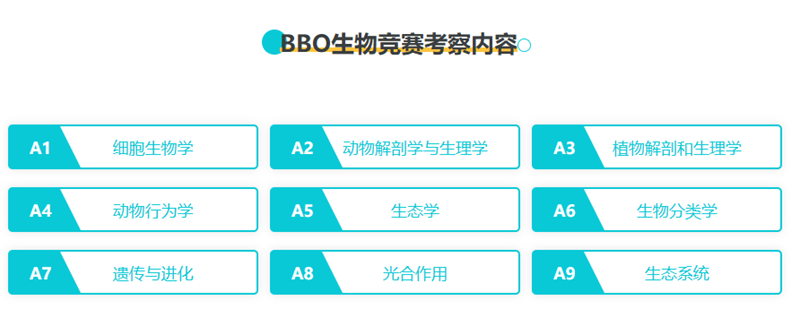 包括但不限于细胞生物学、动物解剖学与生理学、植物解剖学与生理学、遗传与进化、生态学、动物行为学和生物分类学等模块。同时,课程还会针对竞赛题型进行专项训练,包括选择题、填空题、判断题等,并提供历年真题和模拟题供学生练习。