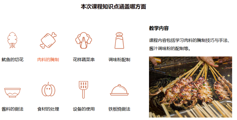 3、培养学员创意设计能力,能够结合市场需求与个人灵感,开发新颖韩国铁板烧菜品,提升菜品差异化与竞争力,满足不同消费者口味需求。