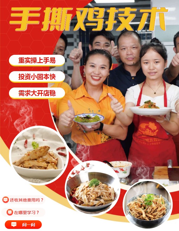 上海手撕鸡技术培训,在餐饮行业竞争日益激烈的当下,特色小吃凭借其独特的口味、便捷的食用方式和亲民的价格,始终占据着市场的重要份额。食为先手撕鸡,作为一道融合了传统工艺与现代口味的经典美食,以其鲜嫩多汁、香辣爽口的特点,深受广大消费者的喜爱。