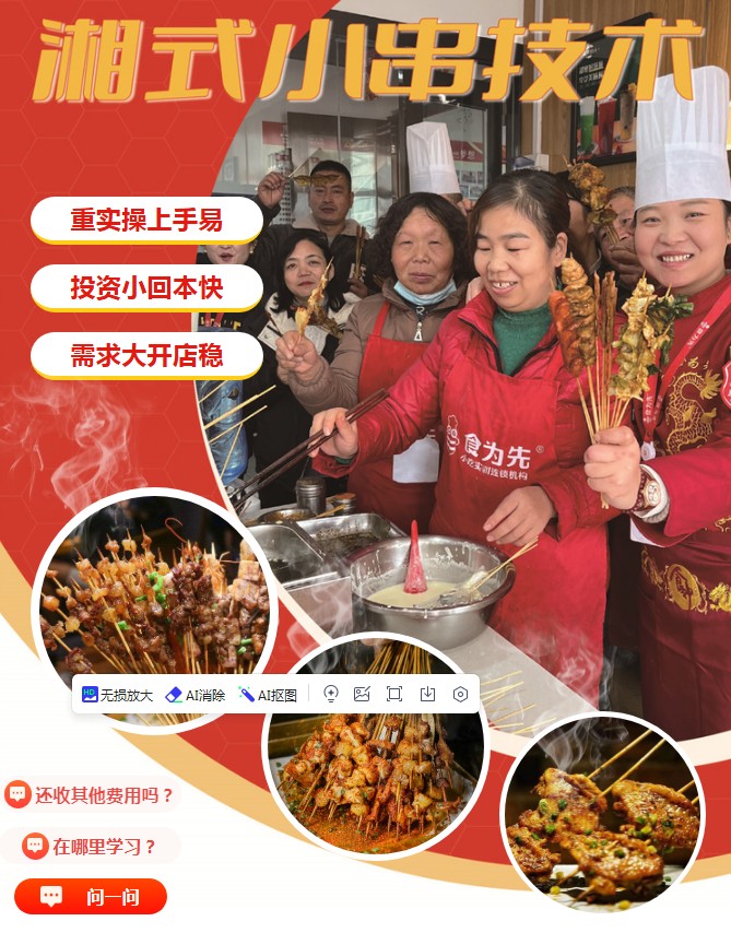 上海湘式小串技术培训,在美食文化丰富多彩的当下,湘式小串以其独特的麻辣鲜香、多样化的食材选择以及亲民的价格,成为了众多消费者和创业者心中的宠儿。